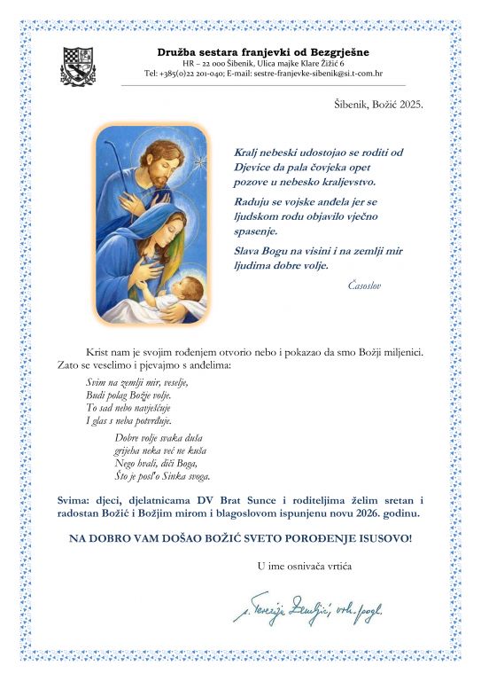 Neka Božić bude vrijeme mira, radosti, zajedništva i Svjetla koje sve obnavlja snagom Božje ljubavi. SRETAN BOŽIĆ I BLAGOSLOVLJENU NOVU 2026. GODINU ŽELE VAM...