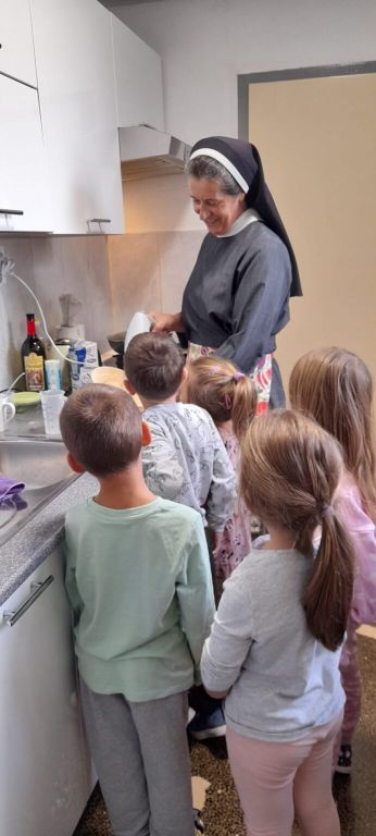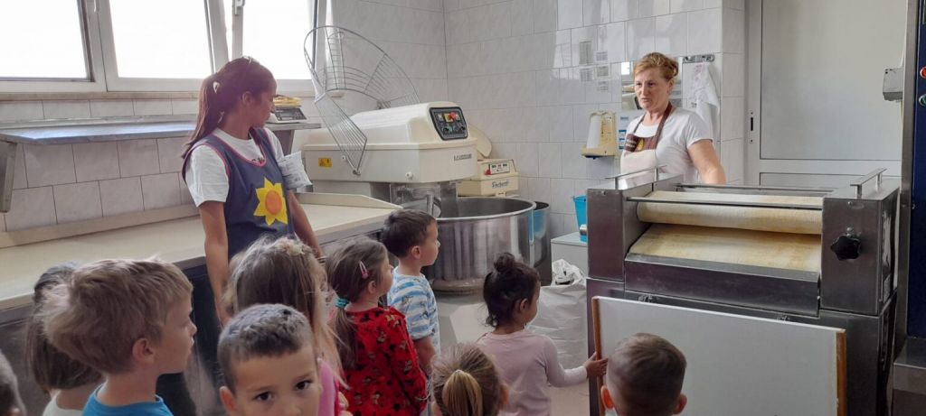 Nakon blagoslova, uslijedilo je blagovanje raznovrsnih peciva, kruha, kolačića i ostaloga što su naši mališani donijeli. Ovo je vrhunac svih aktivnosti kojima su djeca posljednjih dana bila uključena u vrtiću, a tiču se procesa dobivanja kruha i jesenskih blagodati. I sami su sudjelovali u pripremanju tijesta za pečenje kruha sa s. Benediktom. Tu je i posjet pekari „Jadran“ gdje nas je dočekala vlasnica pekare gospođa Anđelina. Ona je pokazala kako se u pekari mijesi i peče kruh i ostali pekarski proizvodi. Veliki strojevi su impresionirali naše mališane. Otišli smo obogaćeni novim spoznajama ali i punim vrećicama peciva koje je gospođa Anđelina darovala djeci. U vrtiću smo napravili svoju malu pekaru koja je dobila ime po našem vrtiću. Kroz sve ove listopadske aktivnosti nastojali smo potaknuti u djeci osjećaj zahvalnosti dragome Bogu, jer sve što imamo dar je Njegove dobrote i ljubavi.