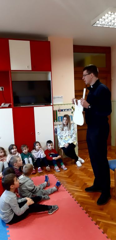 Na radost djece i odgojiteljica, naš đakon je odsvirao na gitari nekoliko duhovnih pjesama.