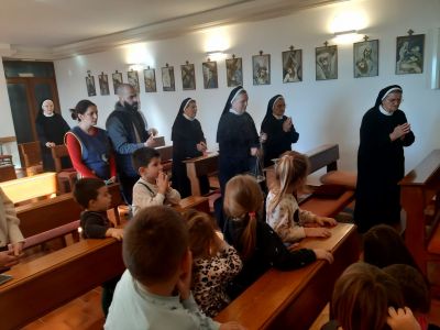 Župnik je započeo s molitvom za blagoslov te potom pročitao evanđelje. Svi skupa smo izmolili najljepšu molitvu Očenaša, a potom nas je župnik blagoslovio svetom vodom i pokadio što je za djecu bilo jako uzbudljivo. Nakon molitve usljedio je blagoslov prostorija vrtića uz pjevanje božićnih pjesama, te blagoslov samostana i zajedničko druženje.