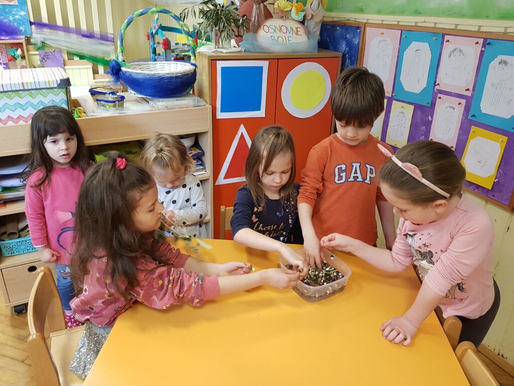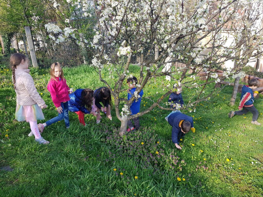 U vrtu su se cvijeću divili, promatrali ga, brali, mirisali, crtali, bojali te zajednički oslikali i izradili “cvjetnu livadu” za uskrsnu dekoraciju vrtića.