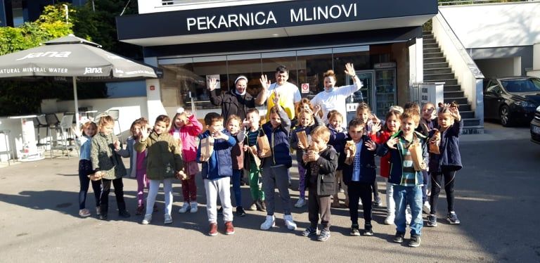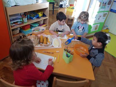 20. listopada, starija odgojna skupina posjetila je pekarnicu „Mlinovi“ u kojoj su djeca imala mogućnost vidjeti načine izrade krušnih peciva, kruha, vidjeli smo kako se pravi tijesto za kruh, pećnice u kojima kruh nastaje. Svoju zahvalu na gostoprimstvu marljivim pekarima pokazali smo pjesmama o kruhu. Taj isti predivan jesenski dan iskoristili smo posjet zagrebačkom groblju Mirogoj, gdje smo kod križa zajedno s djecom uputili svoje molitve za duše naših dragih pokojnika, kao i za one pokojne kojima nitko više ne može upaliti svijeću. Na kraju našeg izleta, krenuli smo u park Maksimir gdje smo proveli zajedničko vrijeme u različitim društveno-zabavnim aktivnostima. Šetnji i istraživanju kakve promjene se odvijaju u prirodi u jesenskom razdoblju, poput opadanja lišća, promjene u njegovoj boji, kakve gljive rastu na tlu, jesenski plodovi poput žira... Sretni, zadovoljni i ispunjeni s novim spoznajama vratili smo se u naš vrtić, u kojem smo nastavili boravak u našem predivnom jesenskom vrtu.