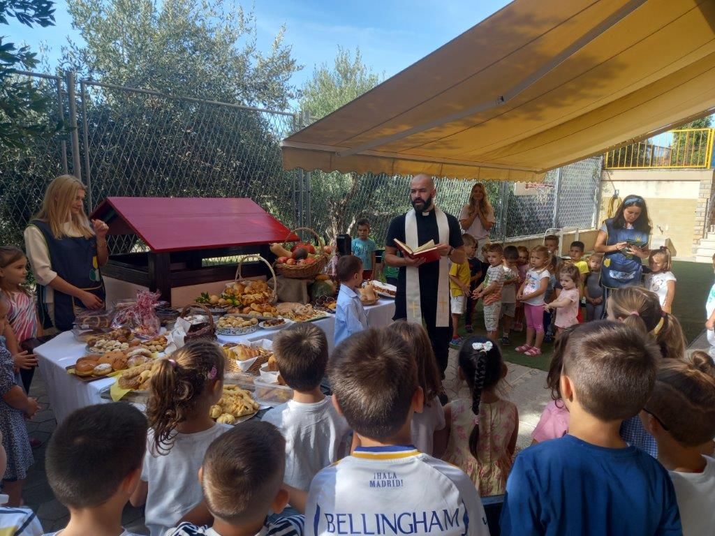 U petak 13. listopada sve te aktivnosti okrunjene su proslavom Dana zahvalnosti za kruh i plodove zemlje. Suradnjom i uključenošću roditelja u Dane kruha, koji su kod kuće zajedno s djecom mijesili, pekli i izrađivali različite pekarske proizvode poput kolača, kiflica, muffina, stolovi su bili prepuni košarica koje su bile spremne za blagoslov. Uz pjesmu, molitvu i recitacije djeca su zahvalila Bogu na svemu što nam je darovano. Naš župnik don Mirko Šakić jednostavnim i toplim riječima potaknuo nas je na molitvu i zahvalu dragome Bogu te je blagoslovio sve proizvode i plodove zemlje.