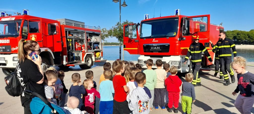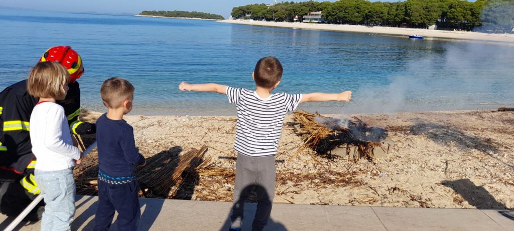 Djeca su upoznata s opremom i načinom gašenja požara i drugim intervencijama. I sami su mogli gasiti vatru koju su vatrogasci za ovu prigodu zapalili. Zapovjednik DVD Primošten, Valentino Gobov detaljno je objasnio djeci za koje intervencije je namijenjen koji kamion, te za što služi oprema u njima. Djeca su s posebnim uzbuđenjem popratila zvuk sirene i rotirajućih svjetala na kamionima. Ulazak u vatrogasni kamion bio je još jedan u nizu uzbuđenja koje su naši mališani ovoga prijepodneva iskusili. Mnogi od njih poželjeli su i sami biti vatrogasci kad porastu.