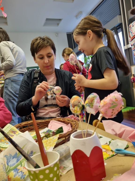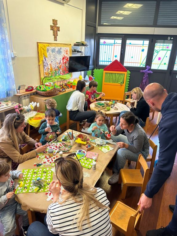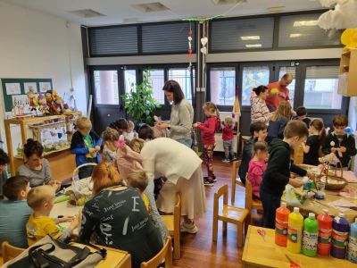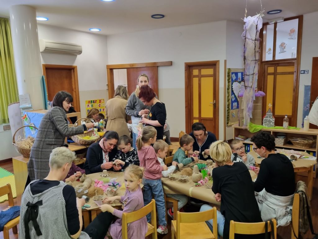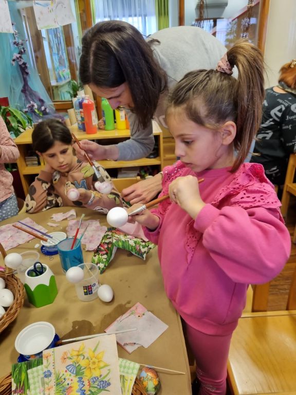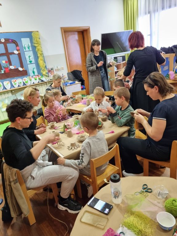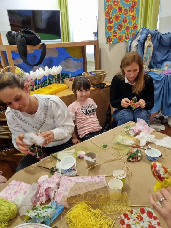 Humanitarno-kreativna radionica uz izradu „uskrsnih“ dekoracija protekla je u ugodnom druženju djece, roditelja i odgojitelja. „Kupovanjem“ uskrsnih ukrasa roditelji su donirali novčana sredstva. Zbog velikog interesa da akcija traje i u Velikom tjednu prikupljena novčana sredstva biti će uplaćena na račun udruge Marijini obroci u Zagrebačkoj banci. Kroz radionice i druženja približavamo obitelj vrtiću i vrtić obitelji, znajući da je obitelj najprirodnije okruženje djeteta i da ima najveću ulogu u procesu dječjeg razvoja.