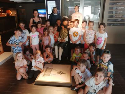 Brodom Jadrolinije - Lara, zaplovili smo 11. lipnja 2021. sa djecom dviju starijih odgojnih skupina na otok Prvić koji se nalazi u šibenskom arhipelagu. Posjetili smo Memorijalni centar Faust Vrančić u Prvić Luci u kojem smo pobliže upoznali stvaralački opus Fausta Vrančića (1551. Šibenik – 1617. Venecija), koji se svojom genijalnošću isticao među najvećim umovima renesanse. Autor je petojezičnog rječnika pod nazivom Rječnik pet najuglednijih jezika Europe i djela Machinae novae, u kojem je opisao 56 raznovrsnih uređaja i tehničkih rješenja.