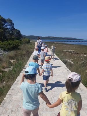 Djeca mlađe odgojne skupine proboravila su na Šetnici u kanalu sv. Ante, u igri na igralištu okruženom borovom šumom u uvali Škar. Bio je to još jedan prekrasan dan ispunjen dječjom znatiželjom i igrom.
