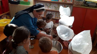 Tijekom blagoslova djeca su pjevala prigodne pjesme: Kruh ljubavi, Hvaljen budi Gospodine moj… Pripremljene slastice zajedno su blagovali u prostorijama vrtića, a ostatak su u košaricama nosili svojim domovima da bi ih podijelili sa članovima obitelji.