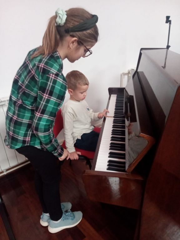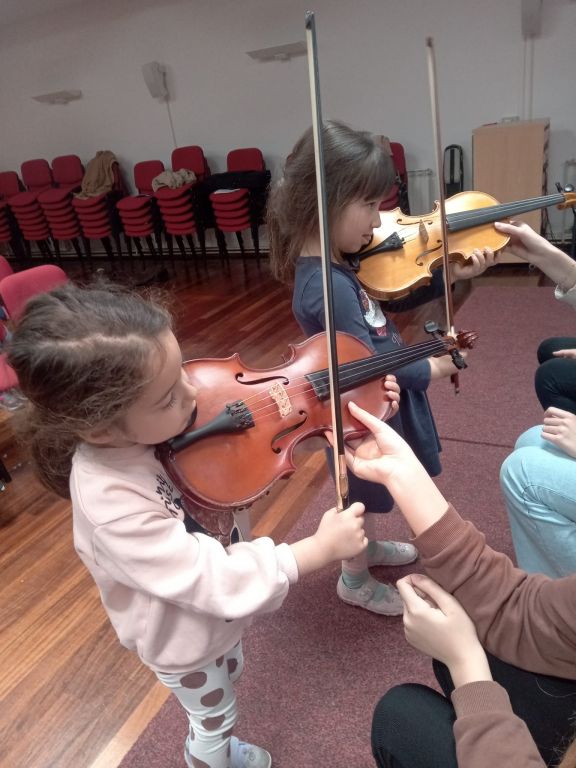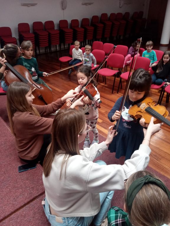 Glazbenici - Matilda Aužina, Ema Despot, Margarita Mikulandra, Bepo Živković našim su Vrtićancima u višenamjenskoj dvorani prezentirali svoj instrument, violine, klavir, gitaru i g. Marija violončelo. Nakon upoznavanja s instrumentima i odsviranih „kompozicija“ uslijedila je zajednička improvizacija naših mentora i djece kroz glazbene sastavnice, sviranje na instrumentima, dječji glas, pjevanje, pokret, ritam. Djeca su imala mogućnost sviranja na svim instrumentima, međusobno su surađivali, ostvarilo se zajedništvo i ojačalo samopouzdanje. Glazba je važan dio našeg života, prati nas u svakodnevnim situacijama od najranije dobi. Izlaganje djece kvalitetnoj glazbi od najranije dobi ima pozitivan učinak na cjelokupni razvoj.