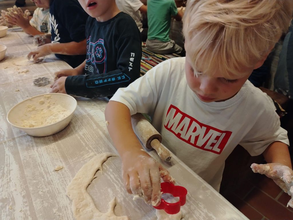 Mlinarica im je predstavila stare tradicijske, očuvane dijelove mlinskog postrojenja, mlinsko kolo te način na koji melje žitarice i pretvara ih u brašno. Potom ih je upoznala sa različitim vrstama žitarica od kojih dobivamo različite vrste i boje brašna(pšenica-bijelo brašno, kukuruz-žuto brašno). Uslijedio je najzanimljiviji dio-djeca su dobila zadatak da od brašna, soli i vode zamijese tijesto. Svi su se s radošću upustili u tu avanturu pa je brašna i tijesta bilo posvuda. Djeca su mijesila, valjala te kalupićima izrezivala različite oblike, plela pletenice od tijesta i oblikovala krafnice.