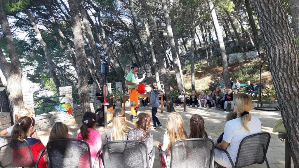 Na početku nove pedagoške godine, dobili smo poziv od obitelji Vlašić, a 3. listopada smo s djecom DV Brat Sunce i izrealizirali posjet. Naime, radi se o objektu Lavica Bellevue apartments studios koji se nalazi u Podstrani, u Splitsko- dalmatinskoj županiji, nekoliko koraka od plaže Lavica. Do imanja smo došli šetnjom uz more. Roditelji su za djecu organizirali dugogodišnjeg animatora / klauna Šarenka. Animacijski program trajao je skoro sat vremena, uz ples i pjesmu.