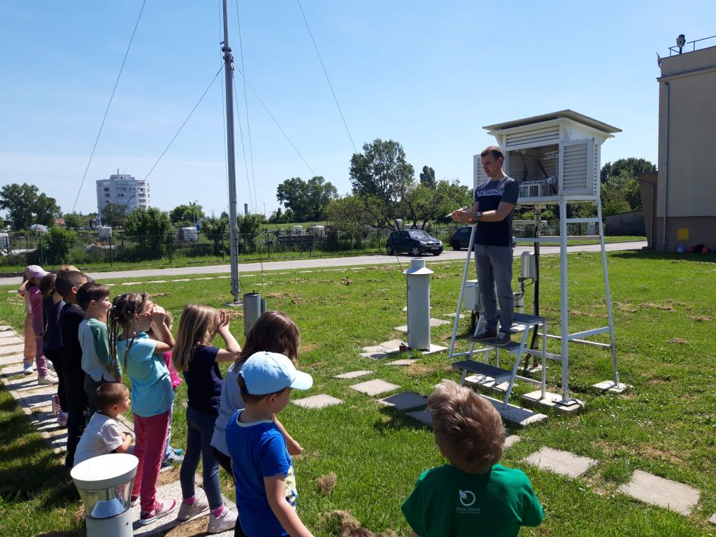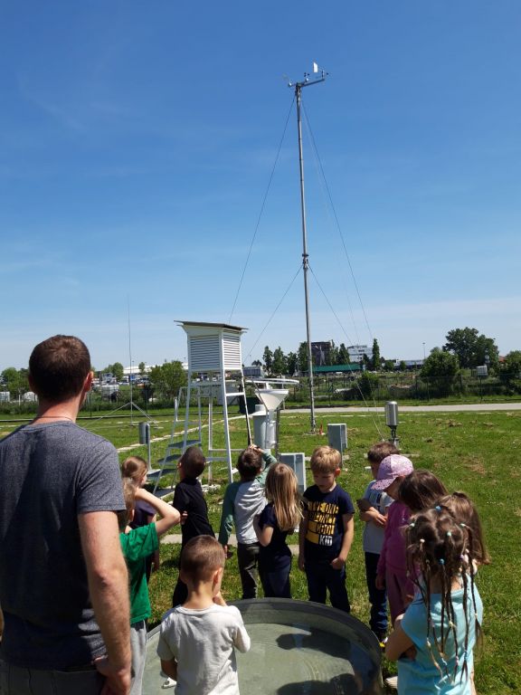29.4.2024 djeca iz skupine Cvjetići su zajedno s odgojiteljima posjetili meteorološku postaju Maksimir – Zagreb. Krenuli smo busom poslije ručka, te smo stigli u 12.00 sati. Tamo nas je toplo dočekao stručni tim meteorologa koji su nam nakon kratke okrijepe, pokazali i objasnili kako se nazivaju i kako rade razne naprave kojima mjerimo vremenske promjene. Meteorolog nam je objasnio što je to termometar, što radi termometar koji mjeri maksimalnu temperaturu, a koji mjeri minimalnu temperaturu. Naučili smo da se termometar puni živom ili sa alkoholom. Vidjeli smo što je sprava za mjerenje isparavanja i naučili smo da se ta sprava zove evaporimetar, djeci je bilo zanimljivo da je to bazen s vodom koji se polako smanjuje jer voda nestaje kad isparava. Vidjeli smo vjetrulju , što je djeci poznato iz crtića „ono što se okreće na kući kad puše vjetar“. Vidjeli smo još i pluviograf koji služi za bilježenje količine vode nakon oborina.