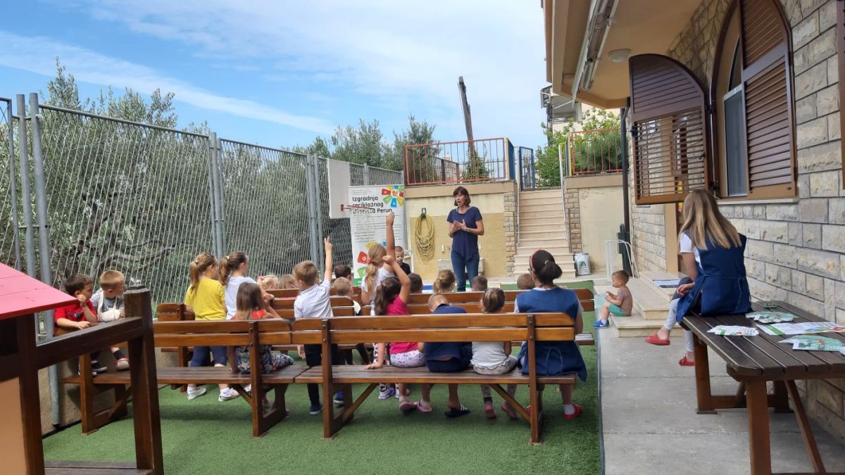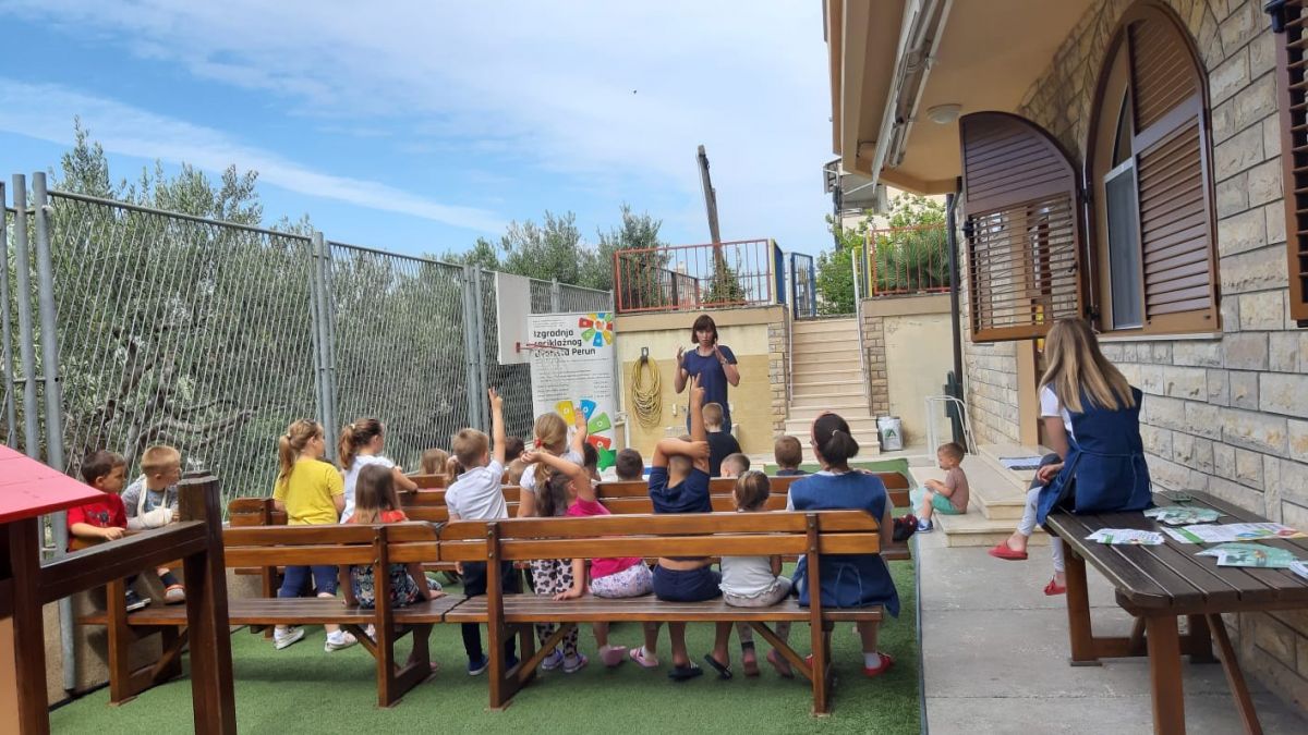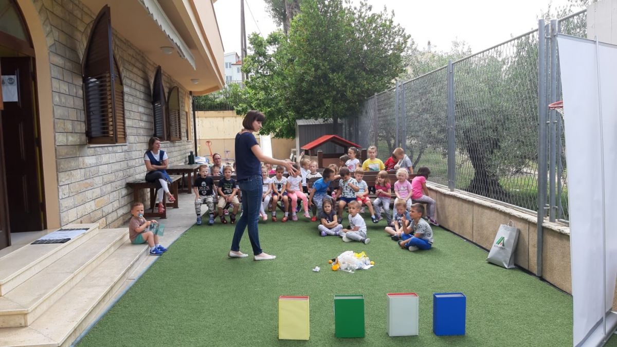 Dana 17.06.2020. (srijeda) u DV Brat Sunce- Podstrana, održala se radionica u sklopu gore navedenog projekta. U radionici su sudjelovale sve tri odgojne skupine. Predstavnica radionice, gđa. Anđela, djeci je približila značenje pojmova “smeće” , “otpad” , “recikliranje” , te “kompostiranje”. Na vrlo slikovit i zanimljiv način je prezentirala srž radionice. Naime, razvrstala je četiri kutije koje su označavale spremnike za odvojeno sakupljanje otpada. U međuvremenu, na pod je izvadila pojedine (očišćene) otpatke. Djeca su ih trebala klasificirati po materijalu te ih ubaciti u odgovarajuće spremnike. Gđa. Anđela se također pripremila za intenzivan dječji interes, stoga je svoj djeci pružila priliku sudjelovati u radionici. Djeca su uživala, aktivno sudjelovala u svakom trenutku radionice, i što je najbitnije, učila čineći.