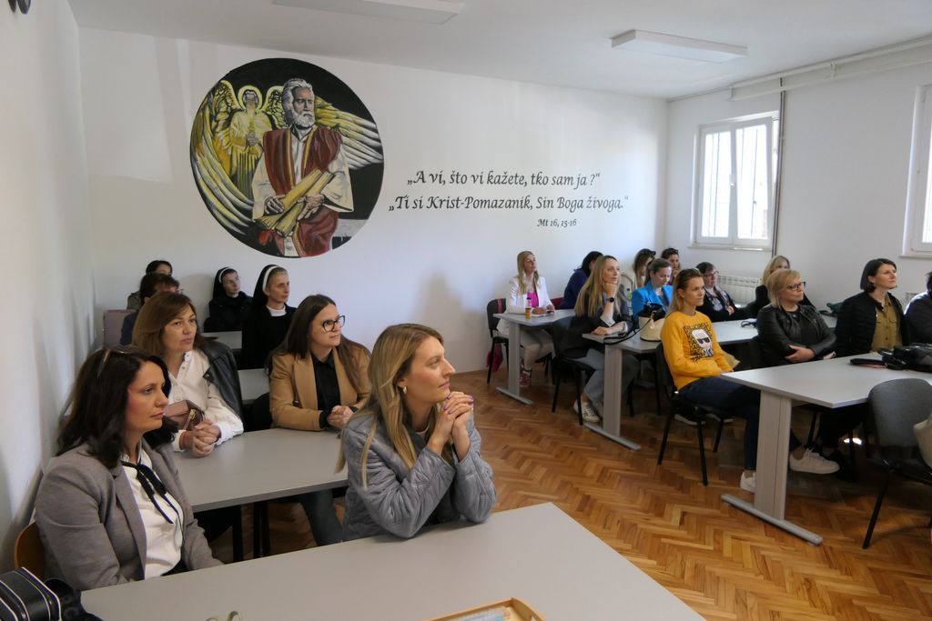 Nakon pauze uslijedile su pedagoške radionice. Prvu radionicu na temu Dobri Pastir osmislile su i održale Diana Ljubić i Marina Ćosić Šurlin, odgojiteljice u vjeri iz DV Mali cvijetak. Cilj ove radionice koja sadrži univerzalnu poruku Kristove ljubavi, bio je upoznavanje Isusa Krista kao dobroga pastira koji ljubi sve ljude i daje svoj život za njih. Odgojiteljice su imale mogućnost slušati i gledati dio prikaza Dobrog Pastira i upoznati se s korištenim katehetsko-didaktičkim materijalom. Drugu radionicu na temu Malim korakom do velike tajne priredile su i održale Petra Mrduljaš i Jelena Mamić, odgojiteljice u vjeri iz DV Dobri. Cilj radionice bio je razvijanje svijesti o važnosti vjerskog odgoja u ranoj i predškolskoj dobi u svrhu cjelovitog razvoja djeteta, a sadržaj je bio povezan sa stjecanjem uvida o važnosti odgojitelja u vjeri koji svojim primjerom svakodnevno služi kao model djeci.
