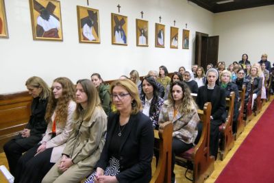 Stručni skup započeo je euharistijskim slavljem koje je predvodio mons. Franjo Frankopan Velić, generalni vikar Splitsko-makarske nadbiskupije. U prigodnoj homiliji mons. Velić osvrnuo se specifičnost poslanja odgojiteljica u vjeri koje se ne može ispuniti bez snage Duha Svetoga, podsjetivši pri tom na tekst iz Djela apostolskih u kojem je prva Crkva mudro i razborito raspoređivala sve poslove. Stoga je je razumljivo, istaknuo je mons. Velić, da je ovaj stručni skup započeo sv. misom, odnosno izvorom iz kojeg se crpi snaga za vršenje poslanja. Naime, kad upremo pogled u Isusa, možemo naprijed unatoč preprekama, poput apostola u lađici na Genezaretskom jezeru, zaključio je mons. Velić.