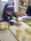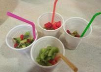 Narezali smo voće, dodali u čaše i prelili vodom. Mješajući slamkom djeca su počela primjećivati da voda poprima različite okuse i opisivali koji okus najviše dominira. Ostatak neiskorištenog voća stavili smo u blender i napravili smoothie.