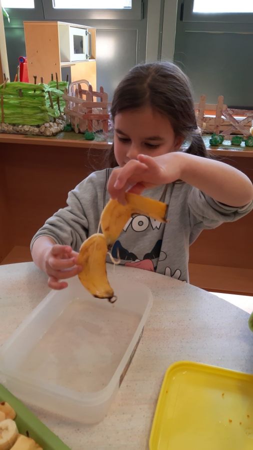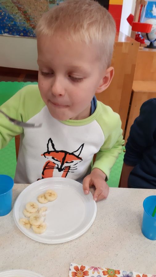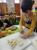 Zapisivali smo zdrave i nezdrave namirnice na plakat. Pravili smo voćnu salatu - djeca su samostalno pripremala, stavljala u zdjelu, pripremljeno voće prelili smo medom. Osvijestili smo važnost zdrave prehrane, važnost vitamina za pravilan rast i razvoj organizma uz edukativne slikovnice i memory igre.