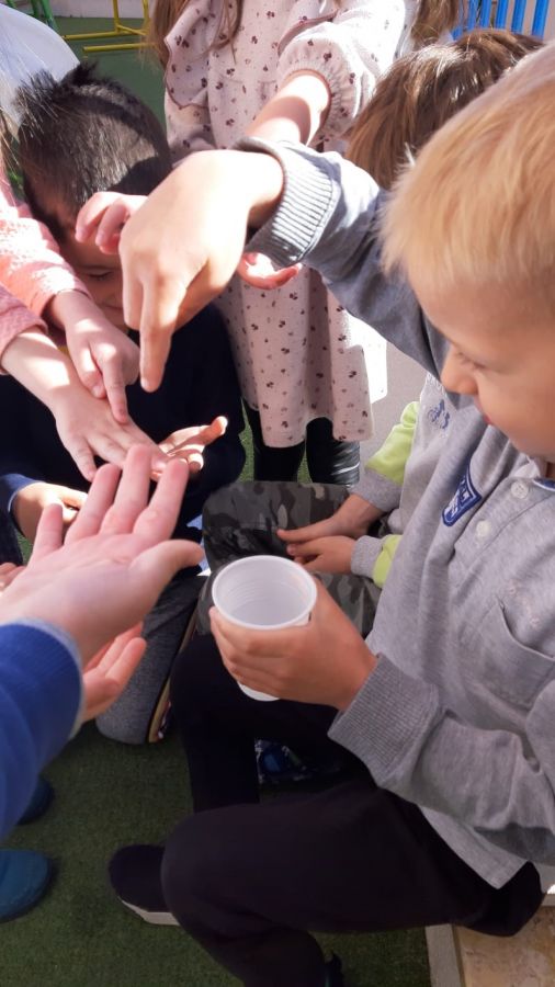 Prisjetili smo se da neka djeca i odrasli nemaju hrane, vode. Razgovarali smo o siromašnim ljudima koji traže hranu po kontejnerima za smeće, o ljudima koji dolaze moliti da im damo nešto za jelo. Djeca su iznosila svoje doživljaje i iskustva u pomaganju siromašnim ljudima, zajedno sa roditeljima i prilikom humanitarnih akcija u vrtiću.