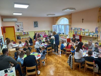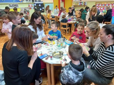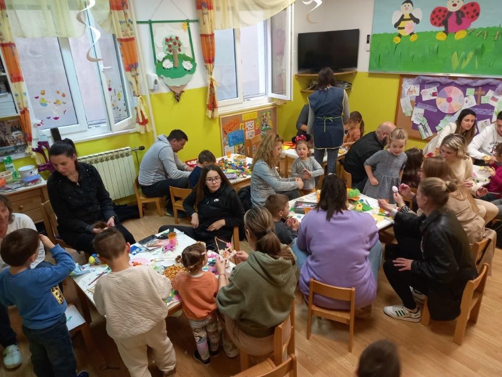 Povodom najvećeg kršćanskog blagdana Uskrsa,organizirali smo kreativnu radionicu za djecu i njihove roditelje. Izrađivali smo razne čestitke, pisanice, piliće, ovčice, cvijeće... Uz raznovrsne poticaje djeca su razvijala svoju kreativnost i maštovitost, te usavršavala likovne vještine.