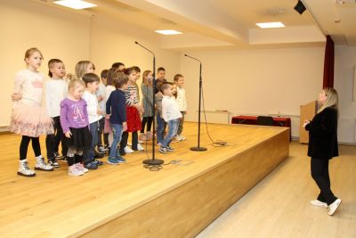 Djeca koja su se igrala u prostorijama vrtića za vrijeme predavanja iznenadila su na završetku predavanja očeve svojim nastupom, čestitkom za tate.