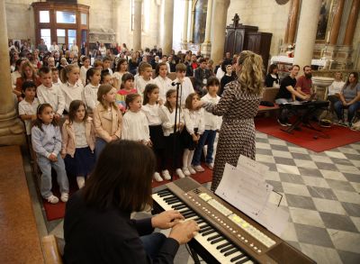 Liturgijsko pjevanje predvodio je Zbor vrtića pod vodstvom odgojiteljice Branke Klisović, uz glazbenu pratnju Ante Lapića - nekadašnjeg polaznika vrtića te Zbor mladih Šibenske biskupije Laudantesi pod vodstvom prof. Filipa Kneževića.