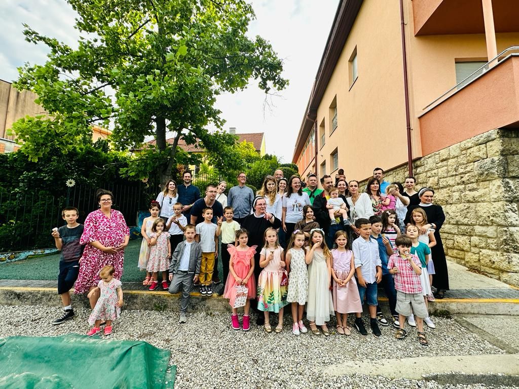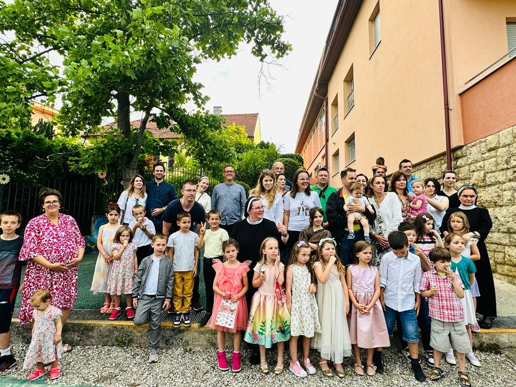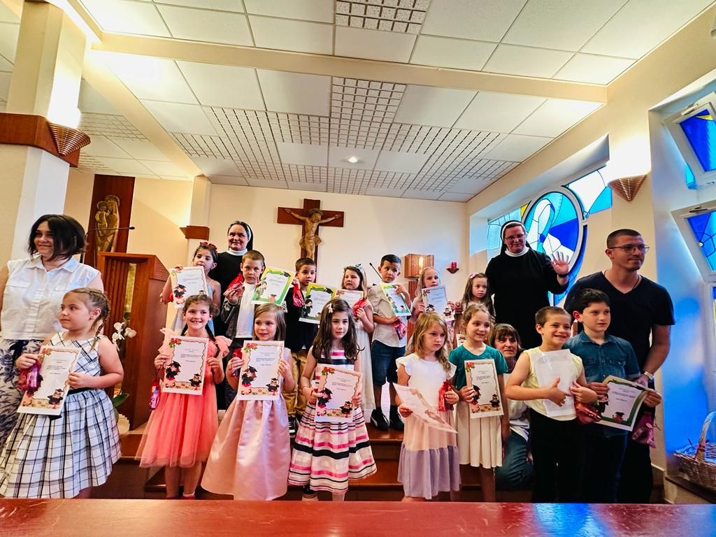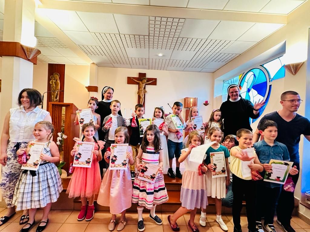 15.6.2023. održana je na Pantovčaku završna priredba i sv. Misa zahvale za provedene dane odrastanja u vrtiću, te da ih i dalje prati Božji blagoslov blagoslov na njihovu putu. Zajedničko okupljanje roditelja i djece odvilo se u samostanskoj kapelici u 17.00 sati. Predškolci su radosni i puni entuzijazma pokazali sve što su ove pedagoške godine naučili u predškolskom programu. Euharistijsko slavlje predvodio svećenik Anđelko Katanec iz susjedne župe sv. Blaža. Svećenik je na samom početku pozdravio sve prisutne roditelje, djecu i odgojitelje. Tijekom sv. Mise se osvrnuo o važnosti svetih sakramenata, obnove duha i tijela tijekom ljetnog razdoblja, jer sada u njihovim malenim životima slijedi jedno novo razdoblje intelektualnog napora i novih obveza. Također se osvrnuo na uspjeh predškolske djece koja su završila malu školu s velikim uspjehom i samopouzdanjem, tu su naučili pjesme, molitve, naučili su čitati, pisati, važnost lijepog ponašanja i koje su to čarobne riječi – MOLIM, OPROSTI, HVALA, IZVOLI. Za vrijeme sv. Mise su djeca radosna srca pjevala i molila, dok su roditelji i odgojitelji sudjelovali u misnim čitanjima. Na kraju sv. Mise djeca su radosno i puna etuzijazma ponosno pokazali svoje predškolsko znanje o prirodi, društvu, čitanju, pisanju, zbrajanju, oduzimanju i pjevanju. Podsjetili smo se koji su to dani u tjednu, nabrojili smo mjesece u godine, rekli koja su to godišnja doba, izrecitirali abecedu i mnogo toga.