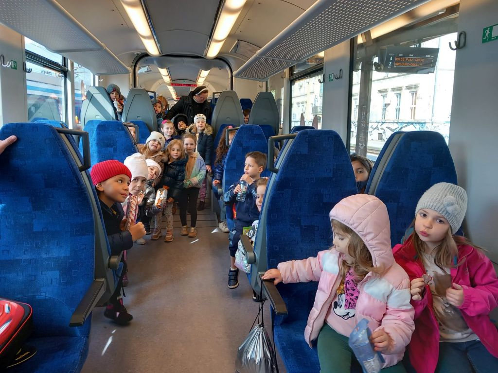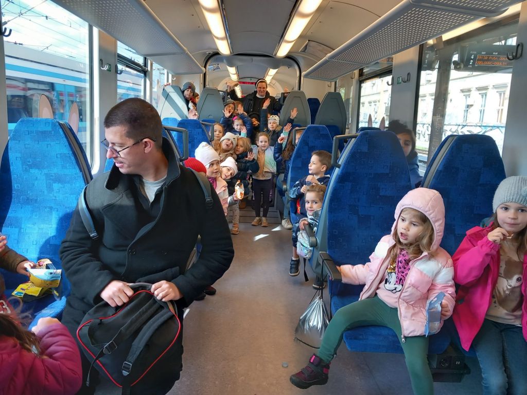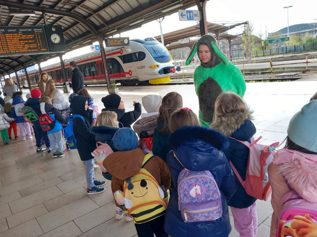 U utorak 4. 4. 2023. u ranim jutarnjim satima odgojitelji i djeca iz starije skupine „Cvjetići“ i iz mlađe skupine „Ribice“ krenuli su autobusom prema Glavnom željezničkom kolodvoru. Tamo nas je dočekala animatorica Uskršnji Zeko, koja nas je odvela u posebno organizirani vlak iz Uskršnje linije za vrtićku djecu „ZEKO – EXPRESS.